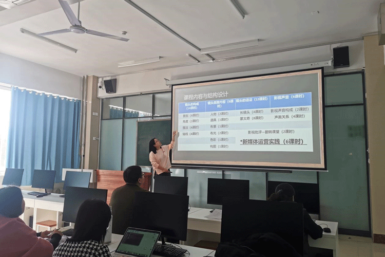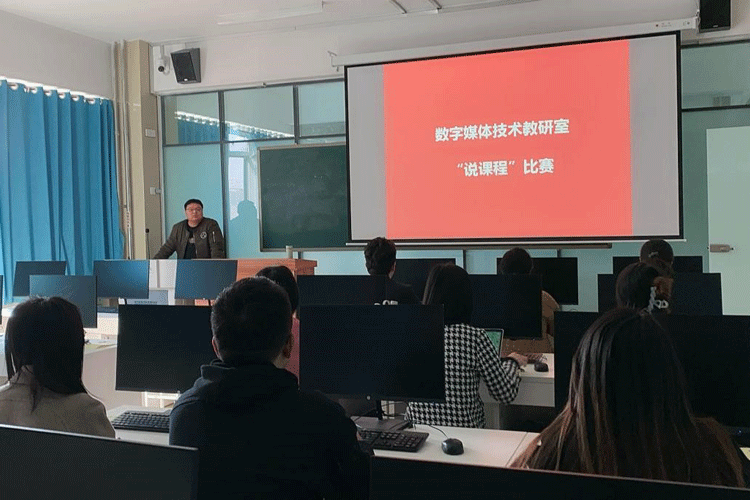 太阳集团网址8722数字媒体技术、数字媒体艺术、产品设计、环境设计教研室于2022年3月3-4日在23号楼407、204、104、503实验室分别开展了本教研室的“说课程”比赛。按照学校“说课程”评价标准,教师们分别从课程定位、课程团队、教学内容、教学资源、教学方法、教学评价、教学效果、特色项目八个方面结合所教内容依次进行15分钟左右的说课。教师们总体准备较充分,讲解流畅,思路清晰,整体反映出我院基层教学组织的规范管理和专任教师的较高专业素养,但同时也反映出一些共性问题:各部分内容占比不够合理、教学方式多样性不强、对课程的特色凝练还不够充分。每位教师说课结束后,由各位教研室主任、专业教授组成的评委组根据说课程评价标准进行点评,帮助任课教师进一步完善说课内容。