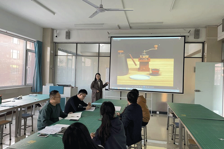 青年教师王艺潼从“八个特征”讲述了《人机工程学》的基本内容,并对本课程的重、难点问题及教学手法进行了讲解,通过板书的形式将“人体尺度与比例”进行了简约绘制。之后,骨干教师分别对青年教师的教姿教态、教学方法及授课内容等进行点评。通过点评环节,青年教师进一步加深了对教学内容的理解,发现自身的不足,表示认真听取意见建议,做好反思与总结,在磨课实践中不断提升课堂教学水平。