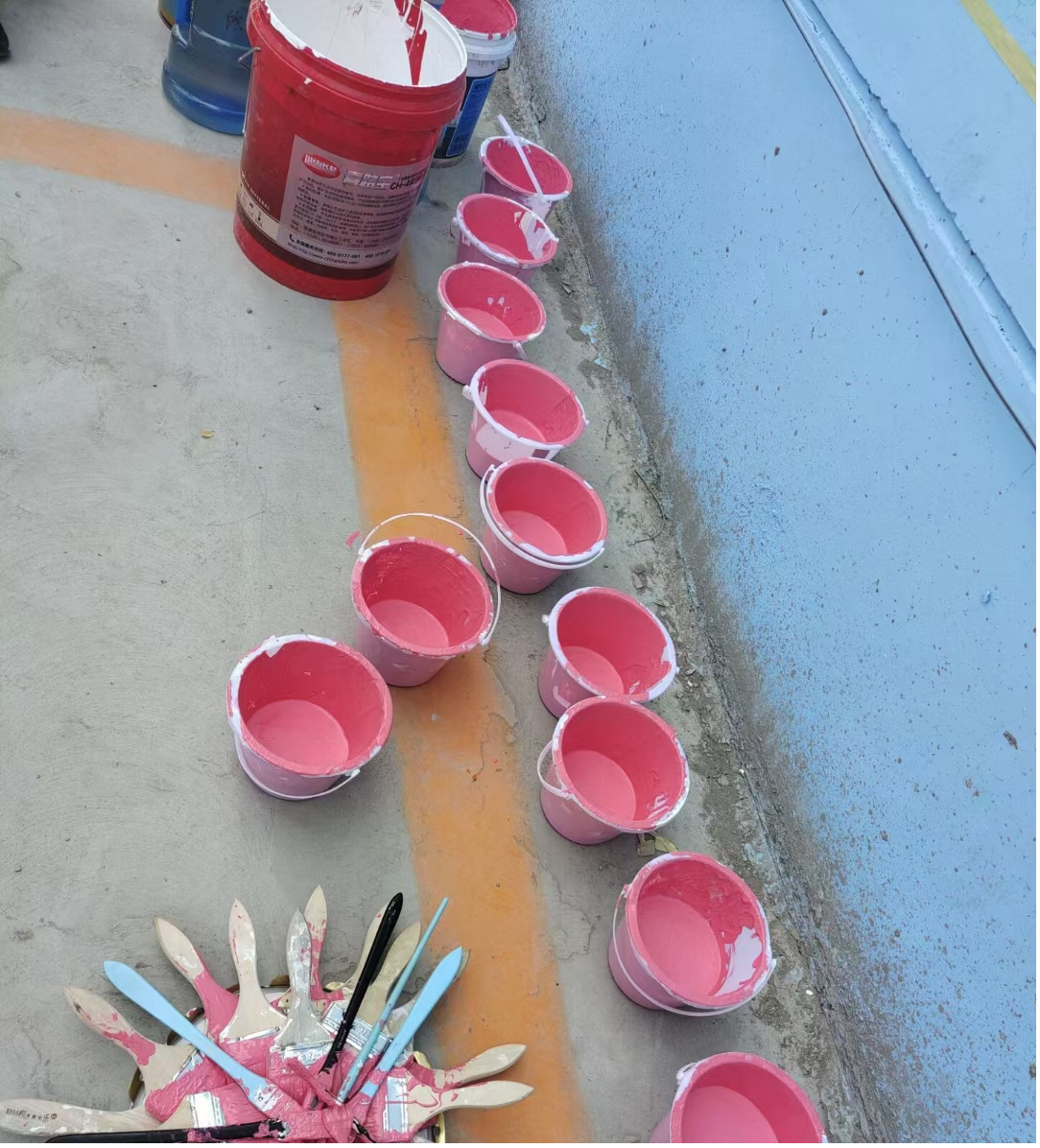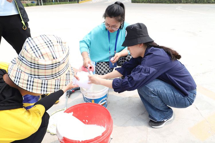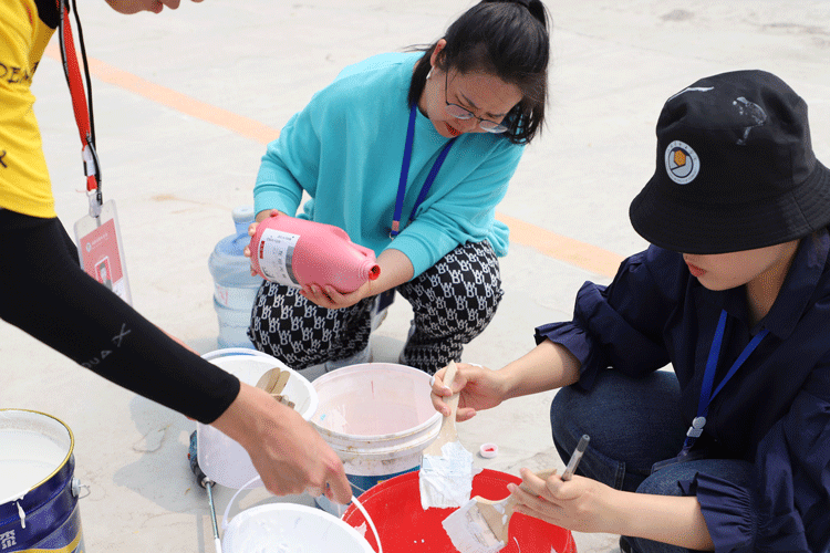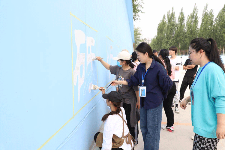 为全面推进课堂教学改革,强化实践教学质量,深化课程思政育人工作,太阳集团网址8722在积极提高基层教学组织的管理能力的基础上,充分调动各专业专任教师的教学改革积极性,引导教师结合实践项目开展形式多样的教学改革。在华晨驾校训练场周边墙面装饰项目启动后,《构成设计实训》课程组积极研讨课程内容、拓展教学思维,将集中实践课程搬到项目现场,充分发挥教学仪器设备的作用,完成了墙面装饰项目的第三项任务,至此,华晨驾校训练场周边墙面装饰项目圆满完成。