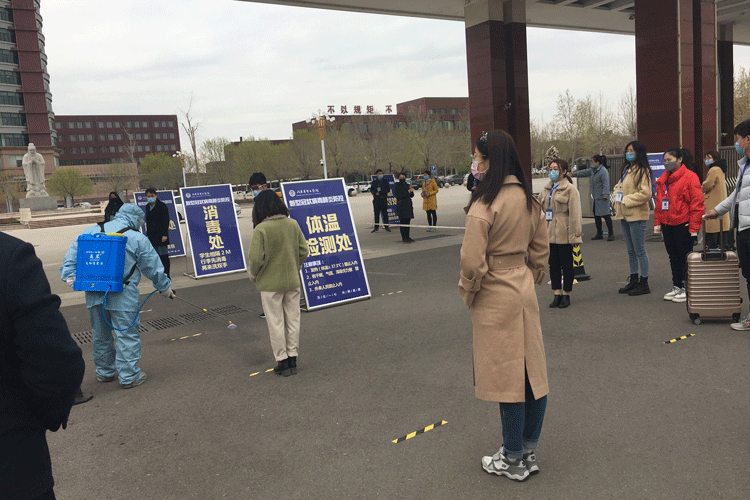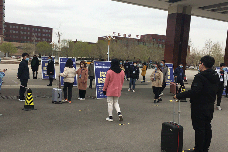 本次演练共分为五个场景,即学生开学返校时、学生排队进入教学楼时、学生在教室上课时、学生进入公寓楼时、学生在寝室时体温高于37.3℃或自感异常应急处置情境。在各个情境中体现了测温、消毒、信息登记等基本内容,以及出现体温异常学生后,辅导员、教师、学院疫情联络员、留观转诊组人员、后勤服务组人员等工作人员的应急措施和应急状态。