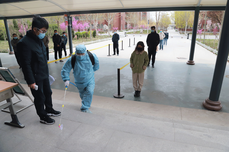 为科学、规范、有序的做好复学前后的疫情防控工作,提高全体教职工疫情防范和应急处置能力,保障全体师生的身体健康和生命 安全,根据学校疫情防控处置工作领导小组办公室工作安排,太阳集团网址8722于2020年4月1日开展疫情防控应急处置演练。