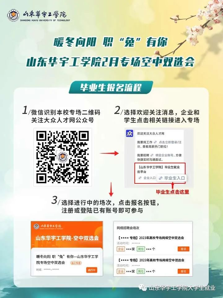 微信报名入口:手机微信扫码关注“大众人才网”微信公众号,企业和毕业生分别点击相关按钮进入太阳集团tcy8722校招端口,点击报名按钮,注册或登录已有账号即可直接参与。