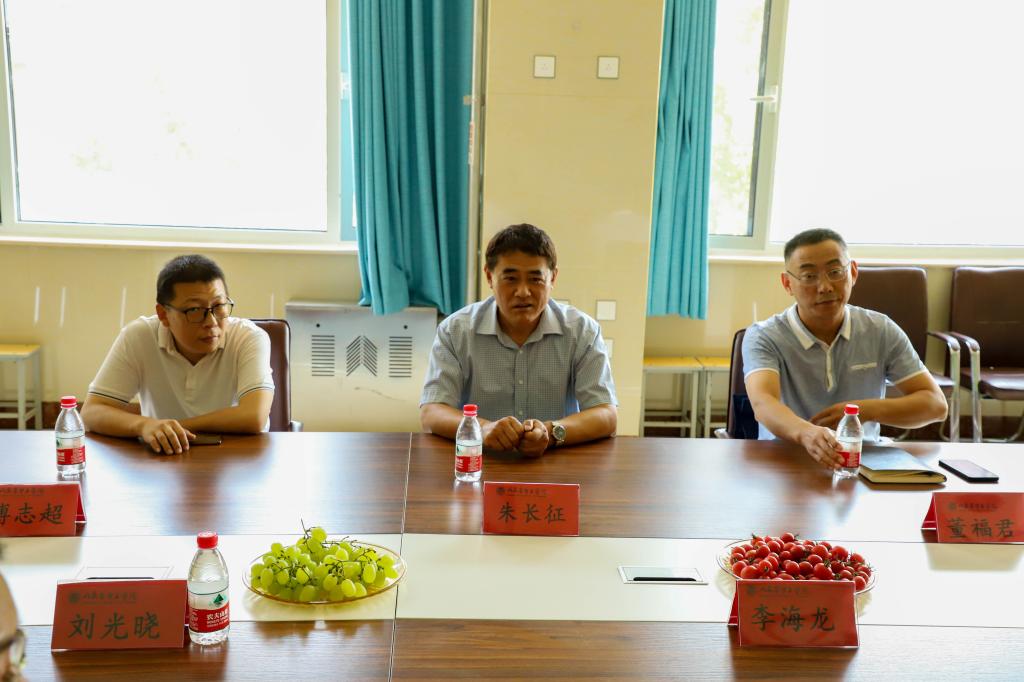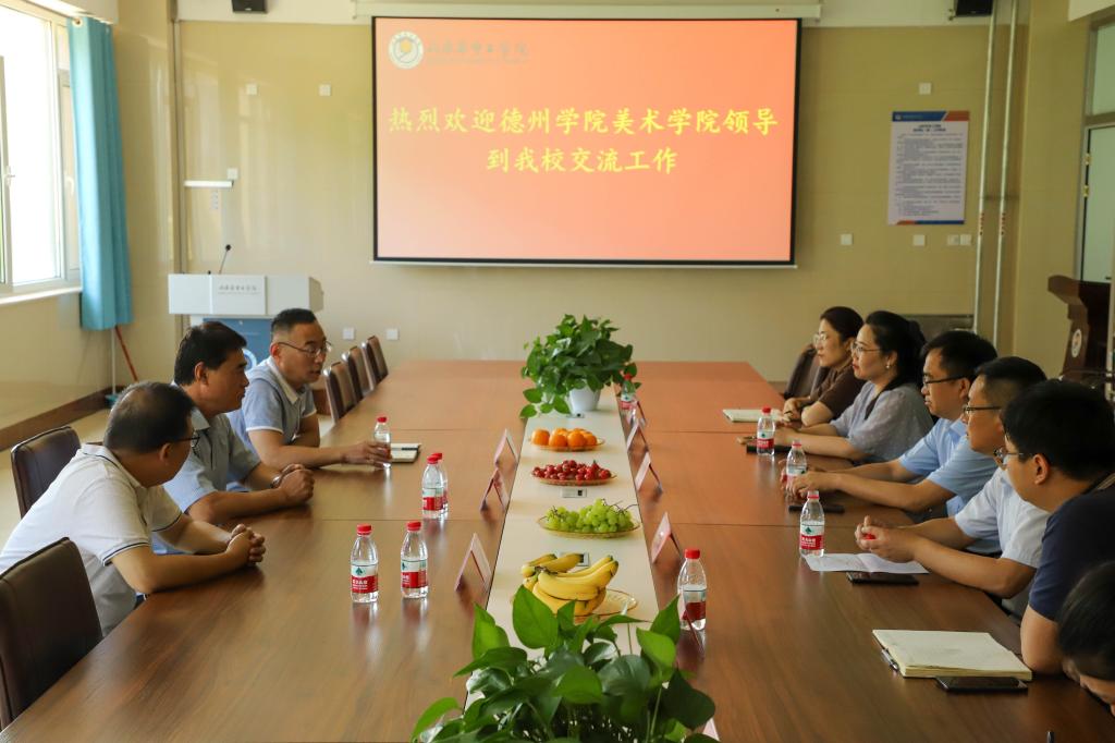 6月15日,德州学院美术学院党委书记董福君、美术学院教师党支部书记傅志超来我校太阳集团网址8722考察交流。德州学院驻我校党建工作指导专员朱长征,太阳集团网址8722院长李海龙,学院党总支书记、副院长刘光晓,学院副院长李清等参加座谈。