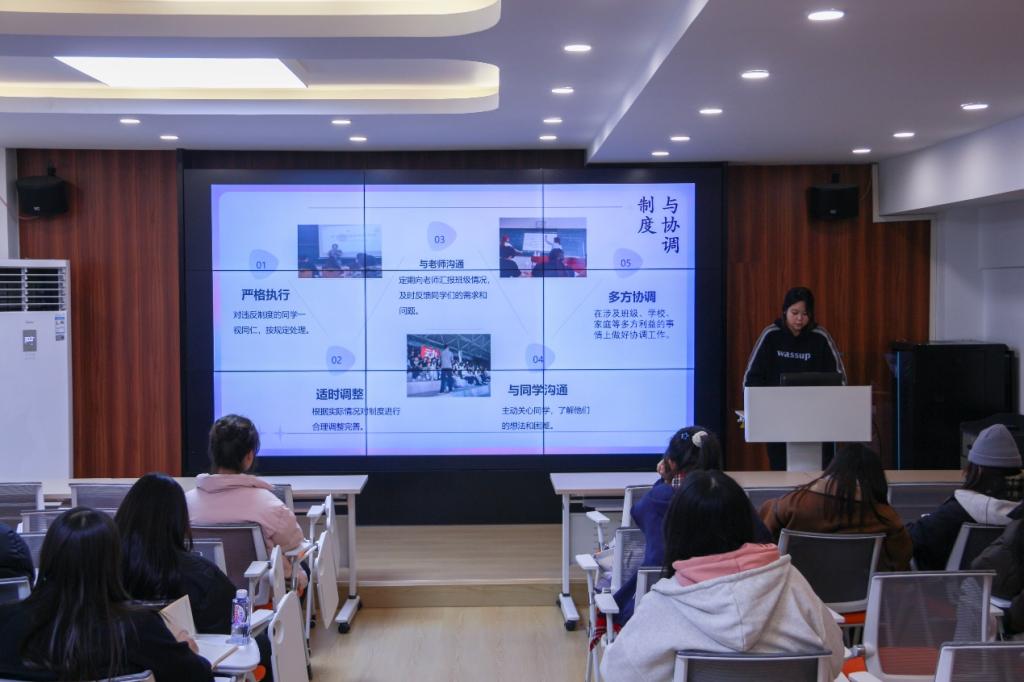 活动伊始,主持人致开幕词,首先感谢了出席本次班长论坛的宋来超老师以及到场的各班班长。强调了班长在班级中的核心作用以及本次论坛对于提升班级管理水平的重要意义。在论坛分享环节,由三位曾获校级先进班集体的班长代表依次发言,他们围绕班级建设、学风营造、活动组织等方面向各个年级班长分享了班级管理经验。活动尾声,宋来超老师作总结讲话,对班长们积极投入班级管理工作表示肯定,并鼓励大家将此次论坛的收获运用到实际工作中,不断探索适合班级发展的新方法。