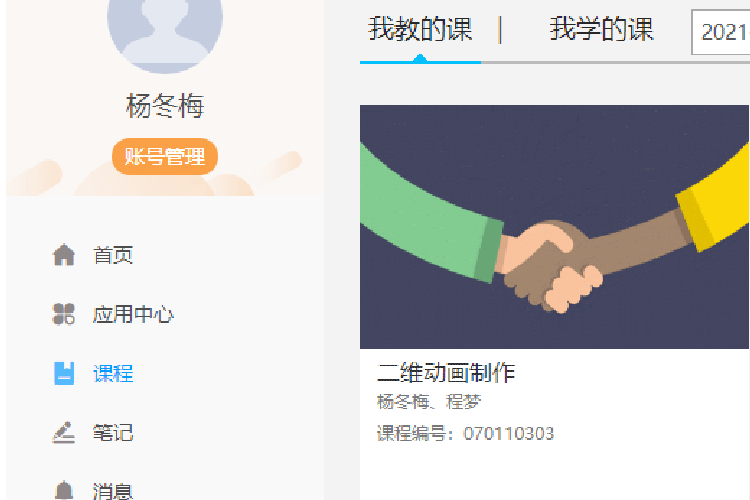 为了方便及时通知每个班级每位学生及时进行在线学习,教师完成辅导答疑、作业布置及批阅作业等工作,为20本科数字媒体技术1、2班两个班级建立了《二维动画制作》课程群。