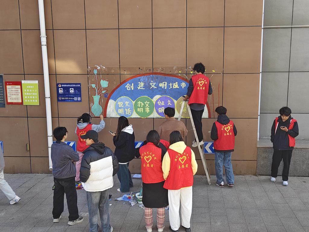 太阳集团网址8722的志愿者充分发挥专业优势,灵活运用所学专业知识,开展艺术墙绘活动。从墙绘的主题、元素的确定,到线稿、上色的完成,志愿者们仔细规划步骤,互相合作,用灵巧的双手将设计转化为现实,不仅展现了技艺的高超,更体现了团队合作的力量。完成之际,整个活动现场被这些色彩斑斓、创意满满的墙绘作品装点得焕然一新,美化了社区环境,让人眼前一亮。