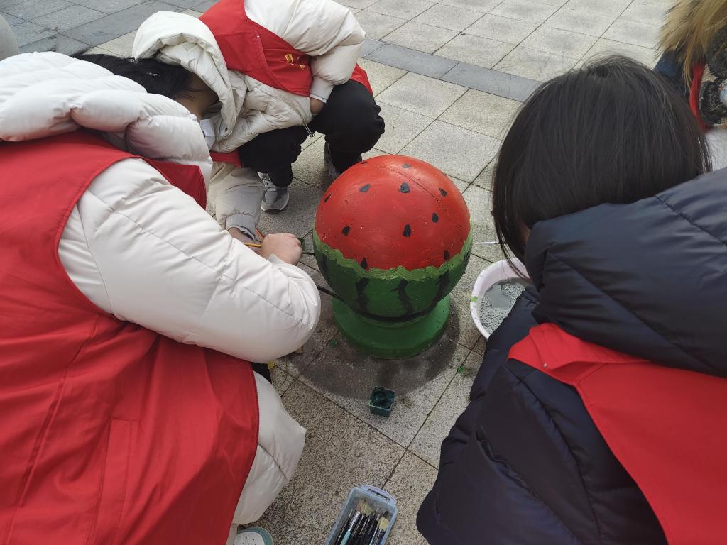 太阳集团网址8722的志愿者充分发挥专业优势,灵活运用所学专业知识,开展石墩绘活动。志愿者确定石墩绘画的风格和色彩后,精心策划每一步骤,通过团队合作,将创意构思变为现实。此次活动不仅是对设计学子专业技能的一次实战检验,更是对团队协作能力、创新思维以及问题解决能力的一次全面提升。