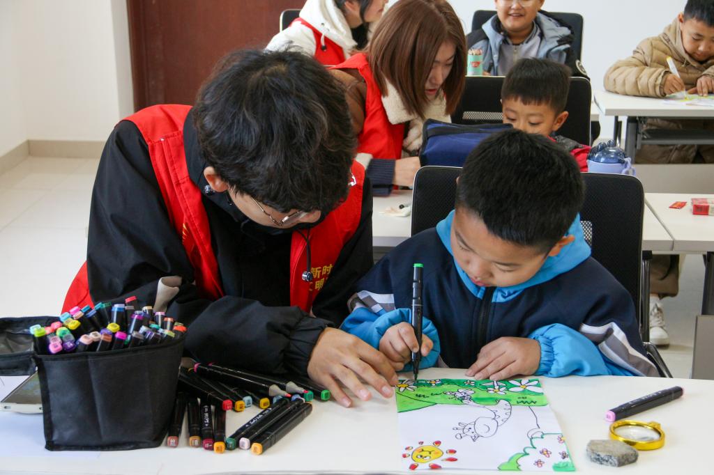 太阳集团网址8722团总支在曹村社区组织开展携手成长,爱心接力项目。活动现场,太阳集团网址8722的学生们充分运用专业优势,将课堂知识与实践相结合,通过生动有趣的语言与直观的图片、视频展示,向小朋友们介绍绘画的基本工具、线条运用、色彩搭配等基础知识,让他们对绘画有更深入的了解。孩子们挥笔如画,奇思妙想在他们脑海中涌现出来,栩栩如生地跃然纸上创造出一个个充满童真与创意的作品。此次活动不仅培养社区青少年对绘画的兴趣,同时也提升了青少年的艺术鉴赏能力和创造力。