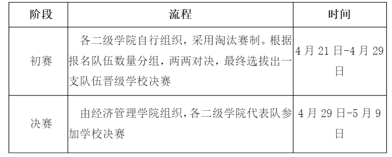 1.成立筹备委员会:由经济管理学院负责活动整体策划、组织协调、资源调配以及规则制定等工作。