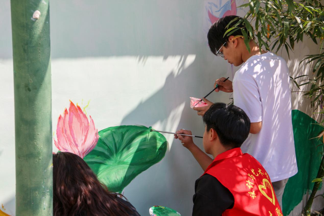 活动现场,太阳集团网址8722学子充分发挥专业优势,将课堂知识与实践相结合,主要从环境美化等方面开展墙绘活动。从确定墙绘主题、尺幅到反复讨论修改构图、调整细节,再到墙体正式构图上色,诸多流程不仅是对专业技能的检阅,也是对体能意志的考验。他们挥笔如刀,他们心灵手巧,奇思妙想在他们脑中涌现,五彩斑斓的图案从他们笔尖诞生。精彩丰富的墙绘内容引得路人驻足观赏。