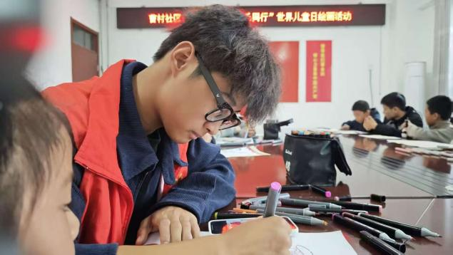 活动现场,大学生志愿者们提前备齐彩笔、铅笔、画纸等材料,以“世界儿童日”为主题引导孩子们发挥想象。孩子们手持画笔专注创作,有的勾勒牵手相伴的小伙伴,有的晕染绚烂的自然景致,有的描绘心中的美好愿景,色彩明快的画作铺满桌面。志愿者们一对一指导,耐心解答孩子们的疑问,适时给予创意启发,现场氛围温馨而热烈,每一幅作品都承载着孩子们对生活的热爱与对世界的憧憬。孩子们在欢快的氛围中学习绘画技巧,不少作品还通过现场展示环节收获了掌声,既培养了艺术兴趣,也激发了创造力与自信心。